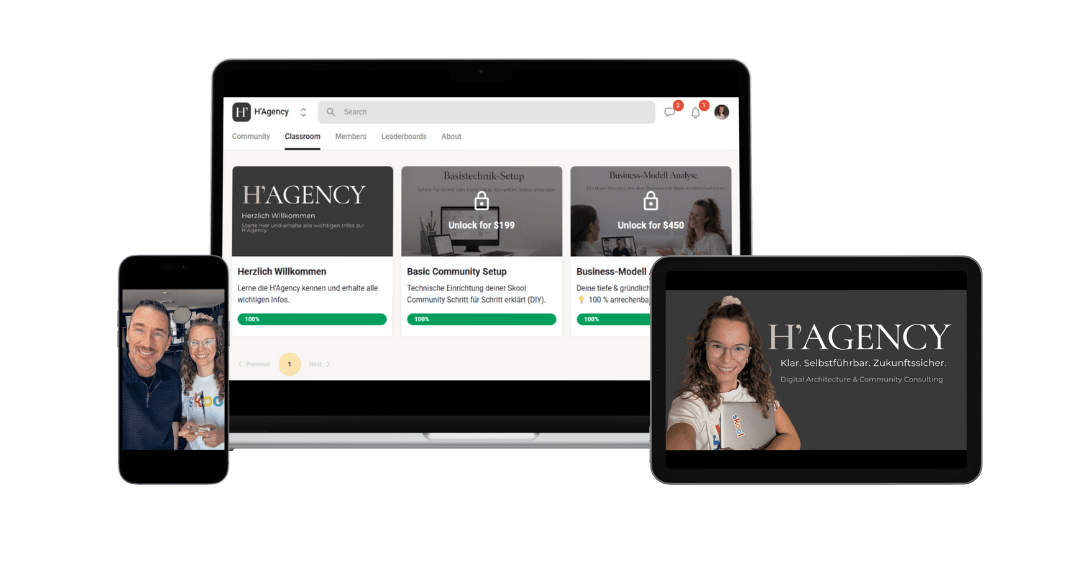 In meiner Skool-Community findest du Inhalte und Gedanken rund um digitale Architektur, Community und nachhaltige Business-Strukturen.